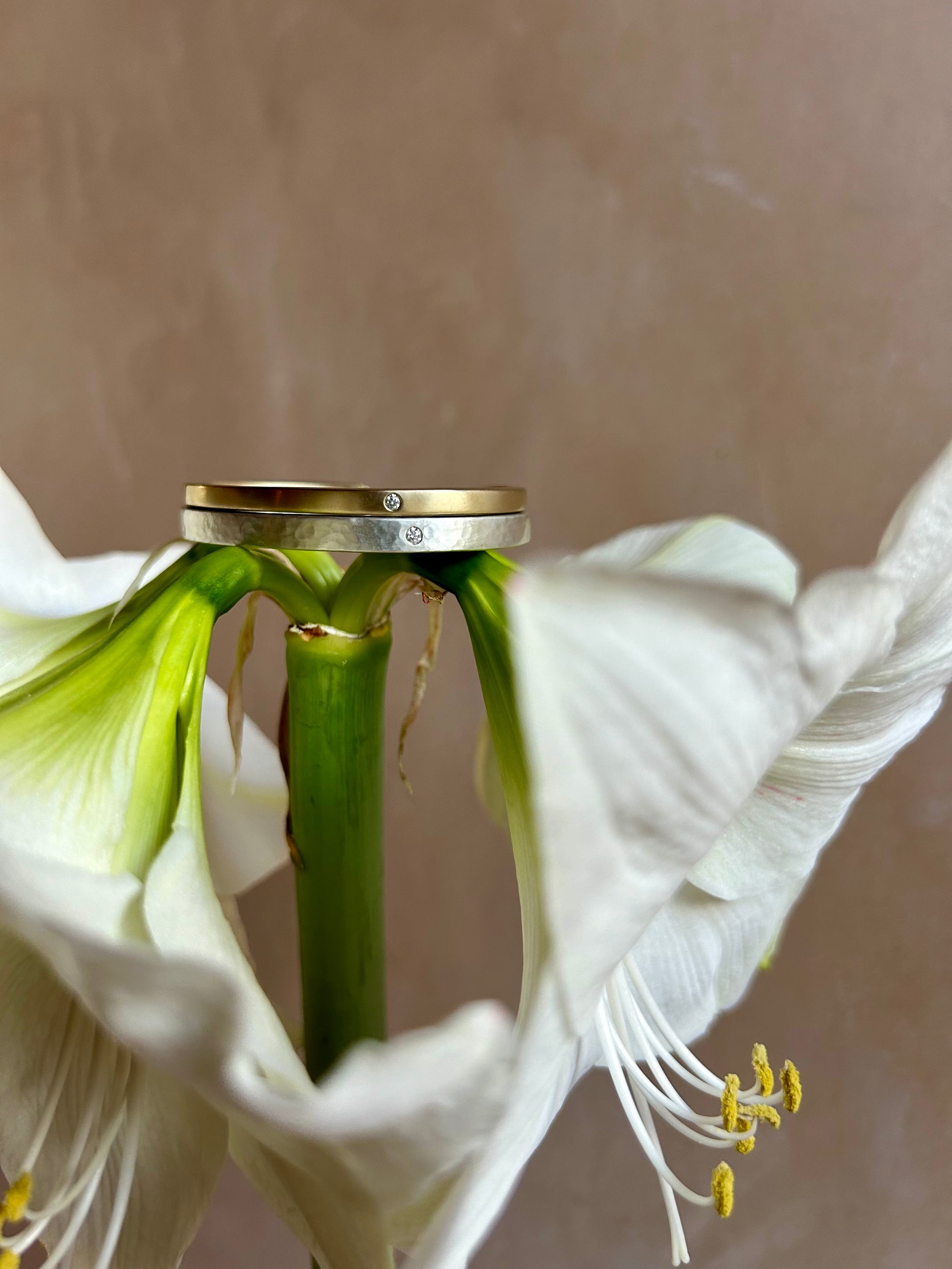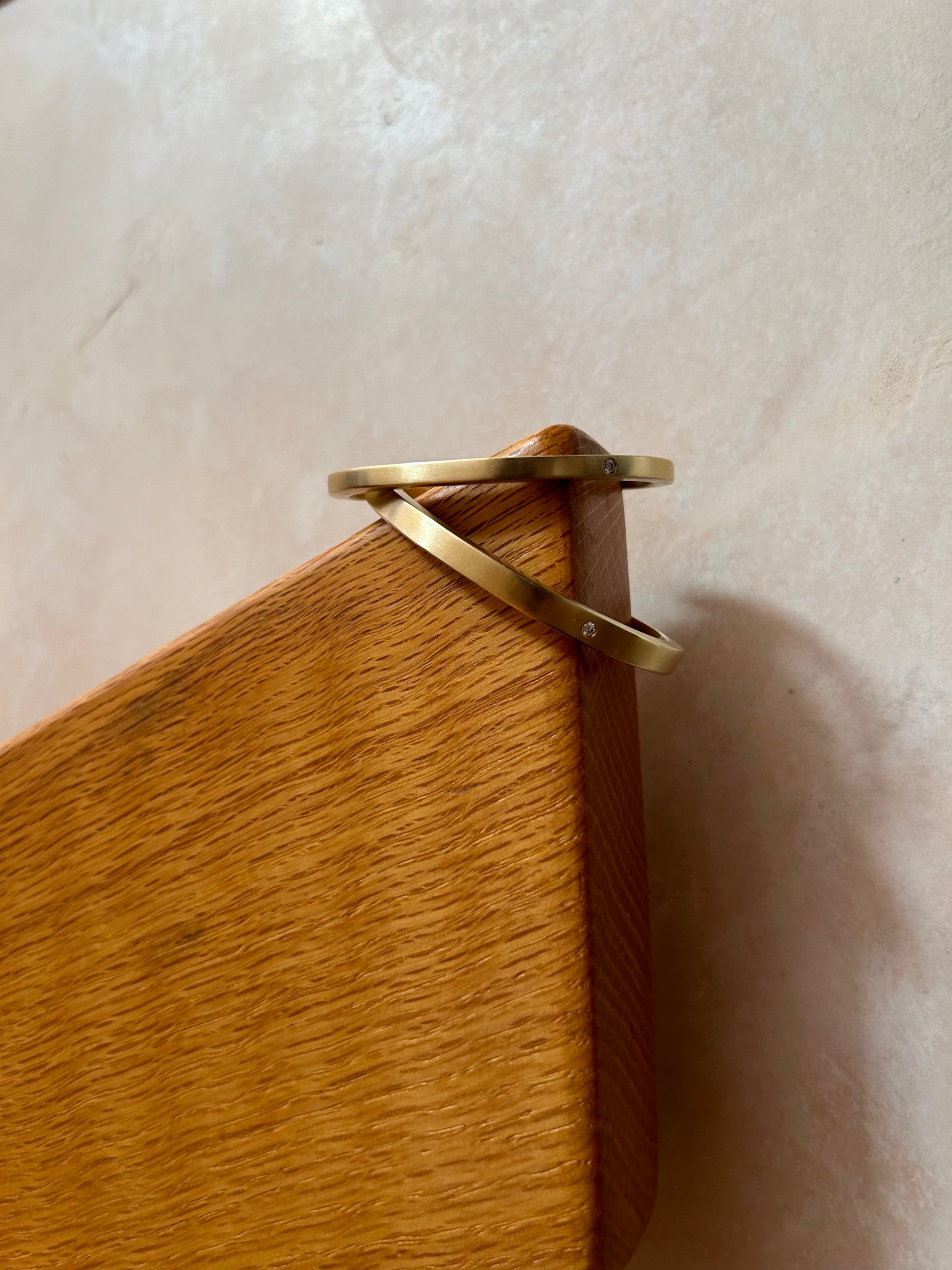 - Brushed, hand-hammered, or polished solid 18k gold, brass, or .925 sterling silver